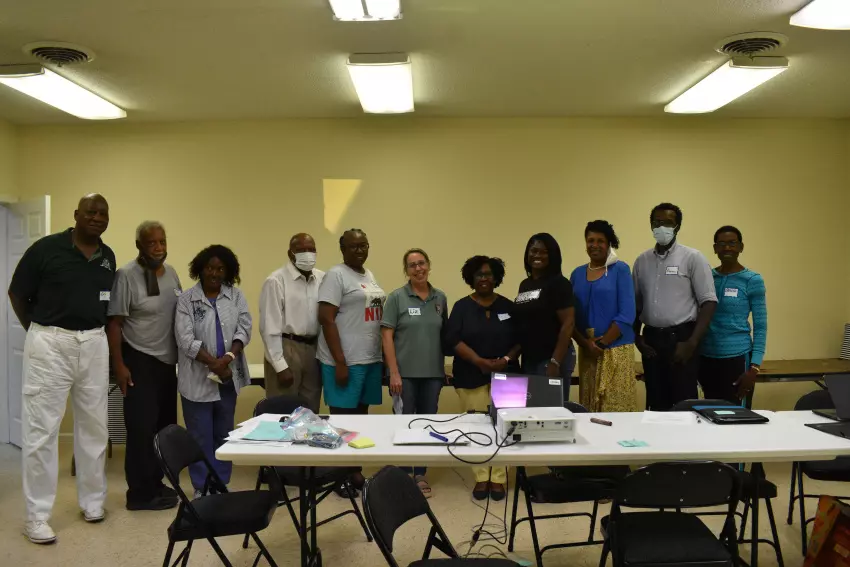Among those who attended the Sunflower Park Planning Committee meeting Thursday are, from the left, Roy Hudson, John Upton, committee organizer Jo Ann Purnell, David Holts, Barbara White, Liz Smith-Incer of the National Park Service, Dee Jones, Mary Tyes-Williams, Debra Hibbler, Marven Cantave and Barbara Washington. (By Katherine Parker)