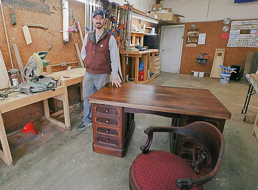 Ben Woodard, 33, of Carrollton, loves building things. He opened a business, Hickory Grove Wood Co., in Carrollton, for the express purpose of making things out of wood. Recently, his lifelong passion to create included refurbishing a unique piece of history: the original work desk and chair of J.Z.