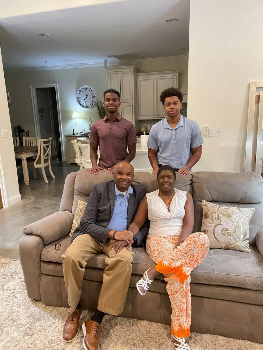 The Boles family relaxes at home. Seated are Dr. Preston Boles, left, a longtime podiatrist in Greenwood, and his wife Rhonda, who has been selected by The Greenwood Commonwealth as the 2023 Mother of the Year. Standing are their sons, Preston II, left, and Matthew. Both are students at Pillow Academy. (By Dan Marsh)