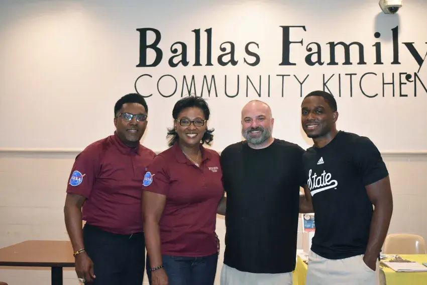 Together, the family showcased those values, presenting $10,000 and a truckload of food Wednesday afternoon to the Ballas Family Community Kitchen.