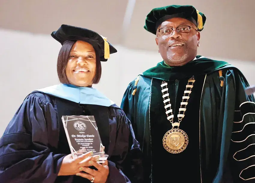 The Greenwood-Leflore-Carroll Economic Development Foundation honored Angela Curry, a former executive director who retired in 2023, on Thursday at its annual meeting. From left are John Stewart, chairman; Curry; and Thomas Gregory, the current executive director.
