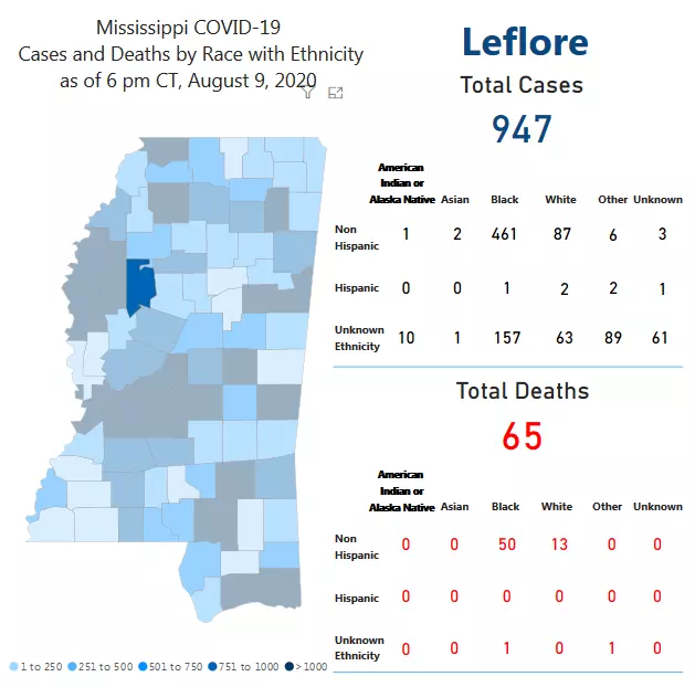 Three more deaths have been added to Leflore County’s COVID-19 fatality toll, pushing the total to 65.