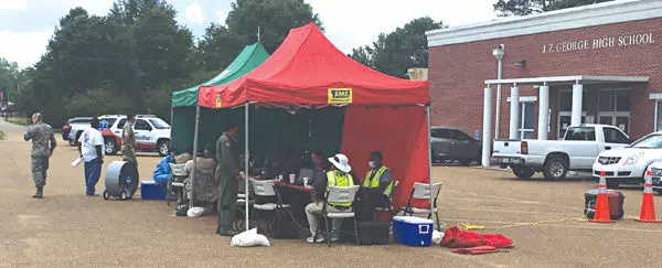 People stood in line on West Washington Street Thursday to make life-saving donations to Mississippi Blood Services.
