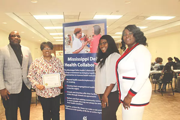 The organizers of the “With Every Heartbeat is Life” workshop include, from left, Jesse Tyler, a community outreach manager; Willie Ann Thomas, a quality improvement nurse; Telisha Swan, the training coordinator for the workshop; and Dr. Tameka Walls, director of the Delta Health Collaborative.
