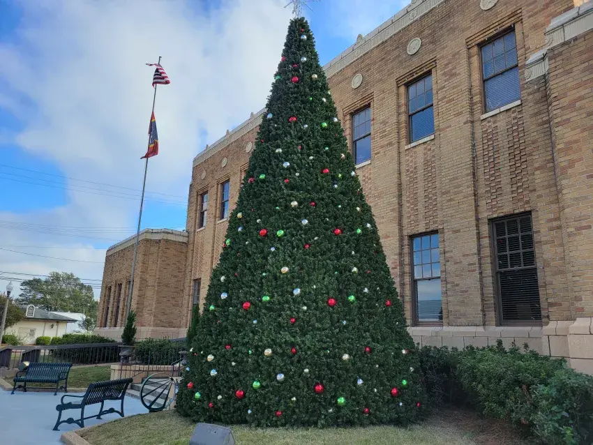Christmas is being celebrated early this year as the Greenwood Public Works Department has installed a 30-foot Christmas tree in front of City Hall. The installation was completed Thursday, and the tree will be on display until after the new year begins. (By Kevin Edwards, Copyright 2024 Emmerich Newspapers, Inc.)